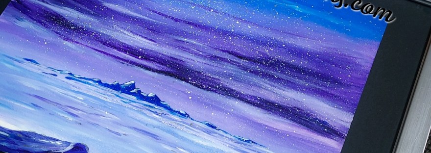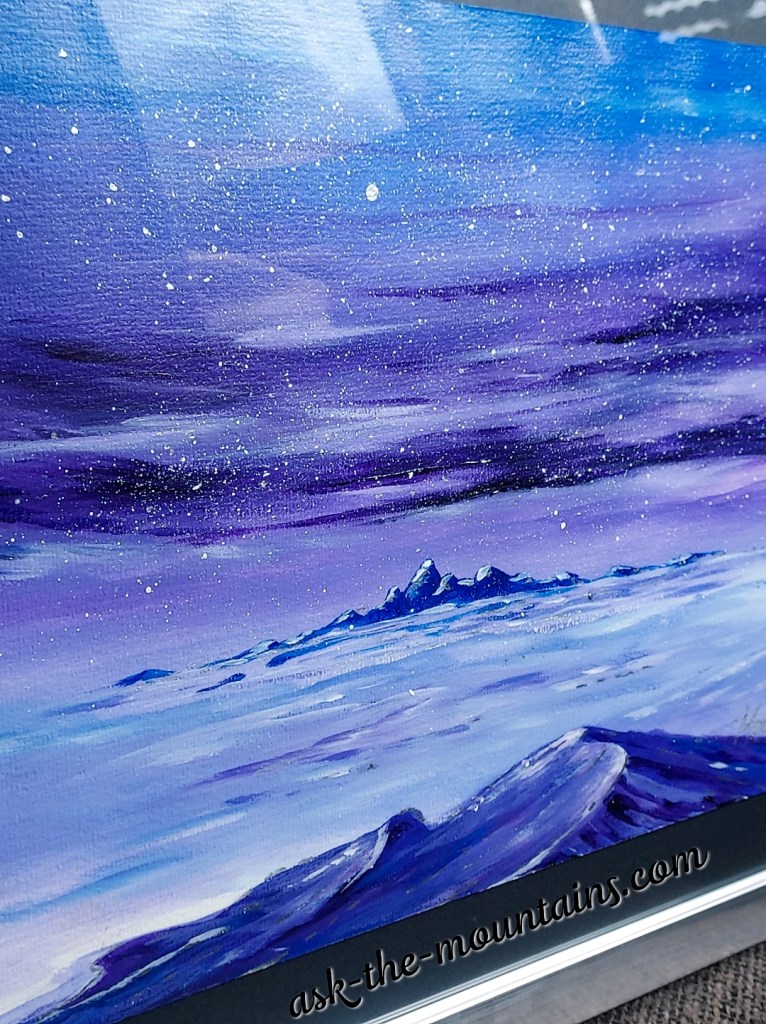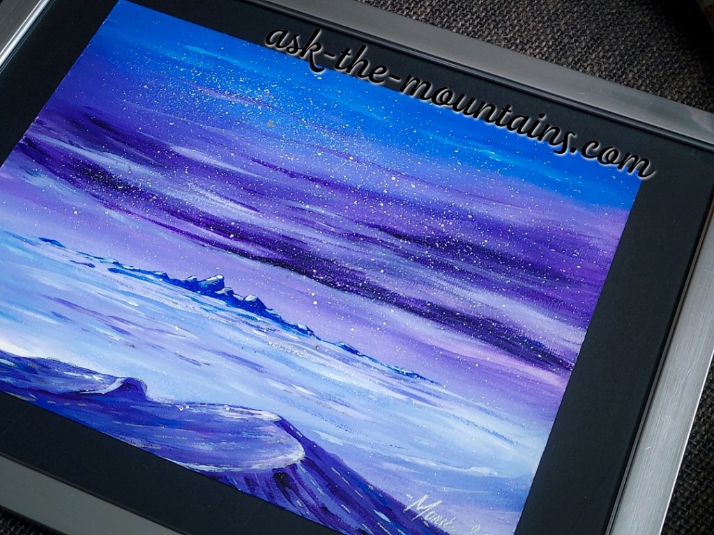 Framed in 30 x 40 cm.. Starry frosty night 🌌💙💜🤍 Acrylic on canvas, silver frame, black passepartout