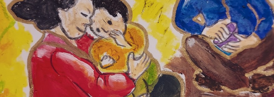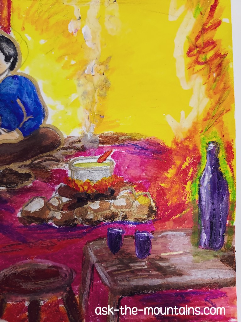 (Acrylic and oil pastel drawing/painting size A4, on mixed media paper)