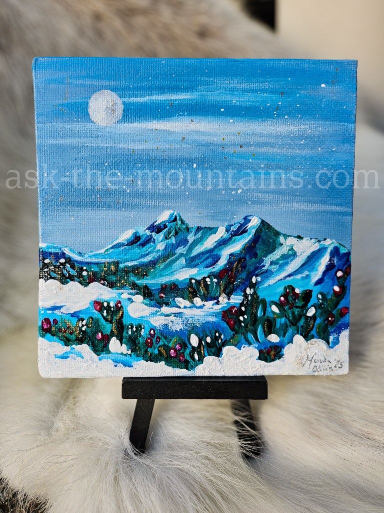 A painting I started a while ago, didn’t know how to finish it, until today. I really like it now. 💙 I used acrylic paint, gold -and glitter pens. It is 15 x 15 cm, the title is “Myk” – meaning soft. It is for sale on my art page. 🫶🏻