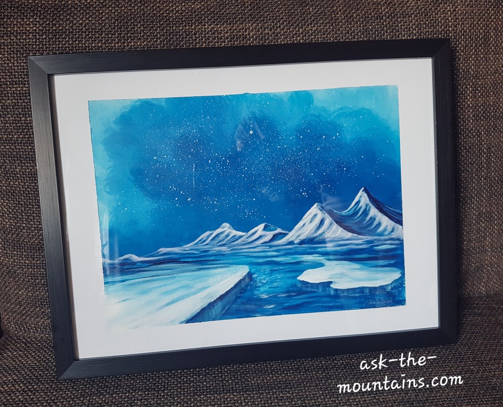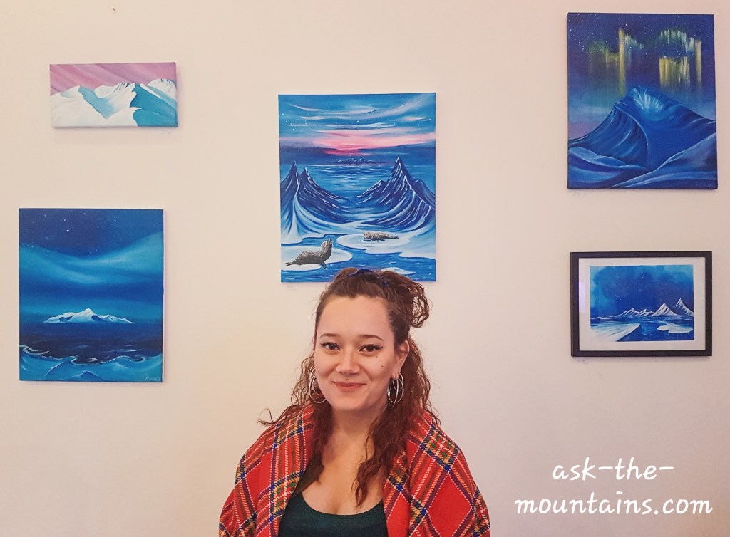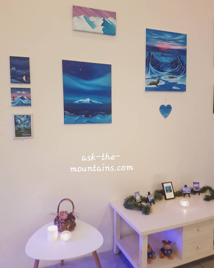 Come see my little exhibition of 13 paintings at Magic Ice Tromsø ❄ Most paintings are for sale 🙏🏻 They also have the cosiest tiny coffee place there, an impressive ice sculpture gallery by Lithuanian artists and a cocktail bar – all ice, even the glasses ☃️🥂🌌