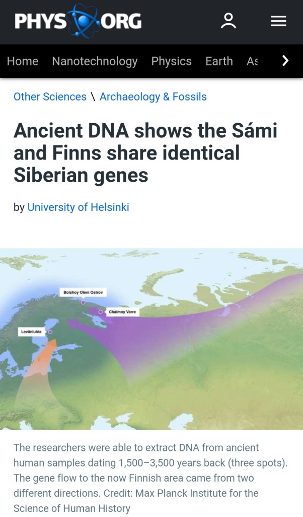 “The first study on the DNA of the ancient inhabitants of Finland has been published, with results indicating that an abundance of genes reached Finland all the way from Siberia.