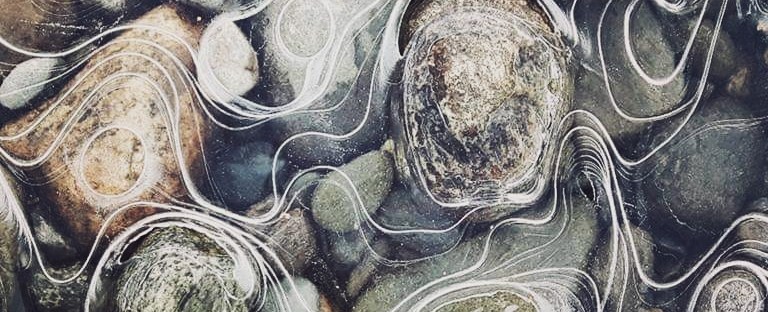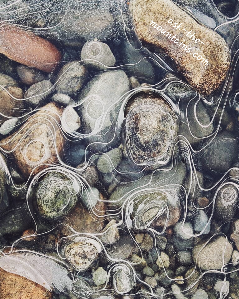 “Just like water, snow and ice, life is always shifting, changing forms.” (This photo is from february 2017). Beautiful texture and shapes in the frozen water.