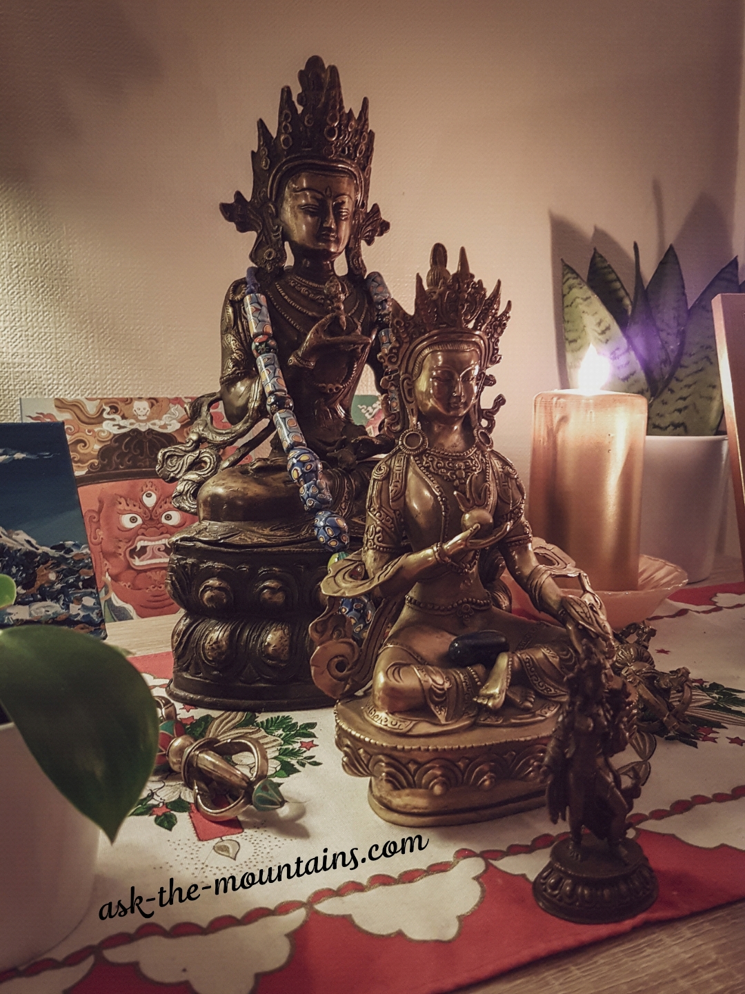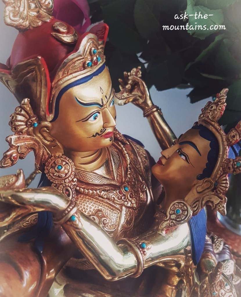 My favourite shawl. Head dress I made by hand.A tantric Padmasambhava and Yeshe Tsogyal statue I helped repaint for a friend. The union of wisdom and compassion. Wish I had a similar one! Hopefully one day I will afford one 🙏🏻