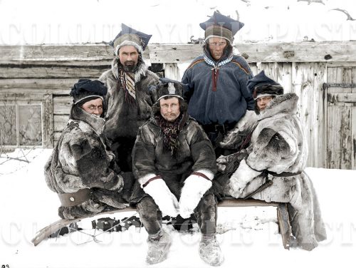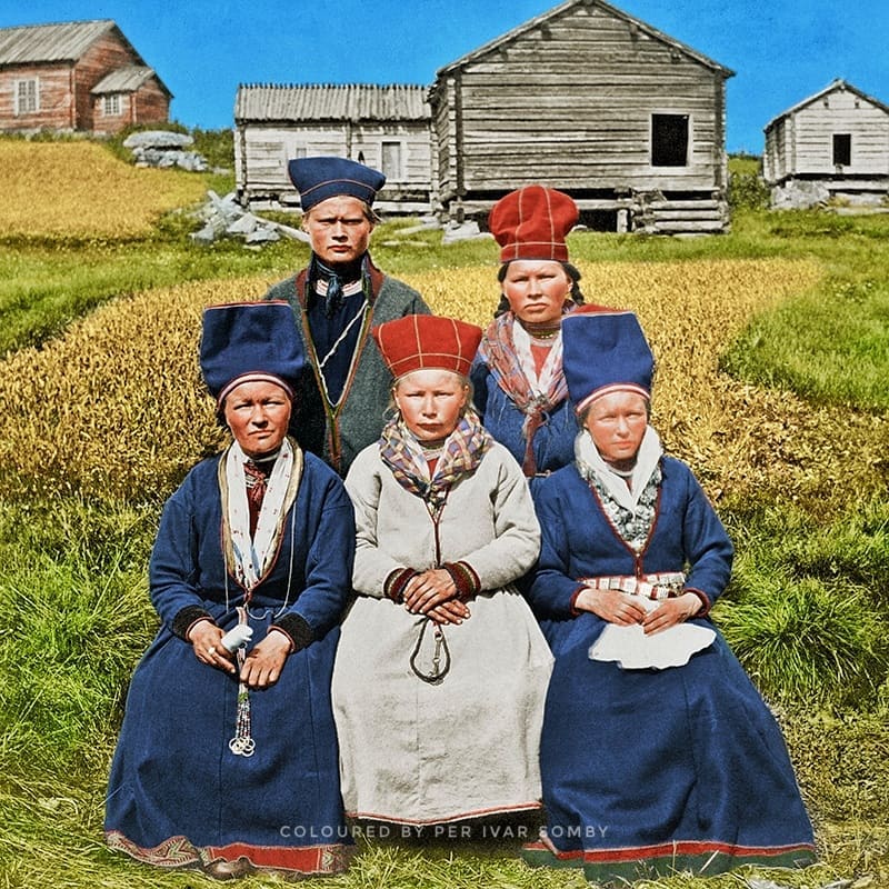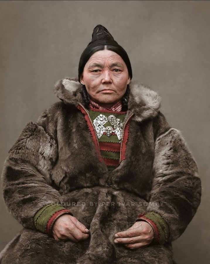 Unlike the Indo-European languages spoken in most of Europe, the Sámi languages belong to the Uralic language family.Photo I took at the main square in Tromsø 2019. Demonstration against violence and discrimination towards sámi.South Sámi women and a man in Sweden. Colourised photo by Per Ivar Somby. Many young Sámis today use the traditional handwoven wool shawl as an everyday garment in a more urban way in order to still show our Sámi identity, and belonging. (Photo by NatGeo of Jokkmokk Sámi Ella-Li Spik, herder).Portrait of my relative Johannes from 6 generations ago. Wearing a pesk/finnmudd. Finnmark, Arctic Sápmi. I think we have the same nose, and eyebrows. It was a black-white photo by S. Trombolt but Per I. Somby colorised it.