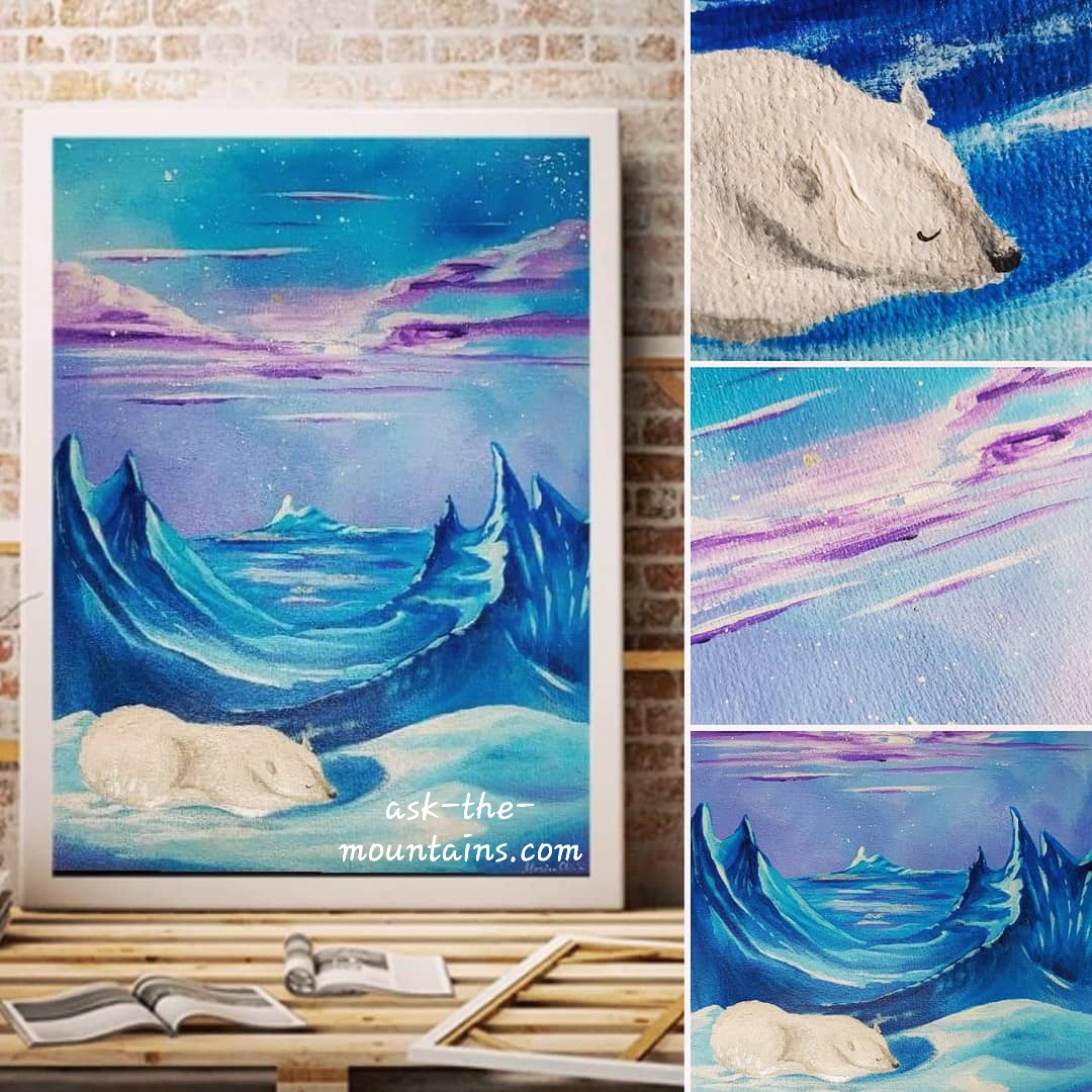 Click to see bigger versionsMy little pregnant polar bear. Wrote a post earlier about this painting 💜 Here she is framed.