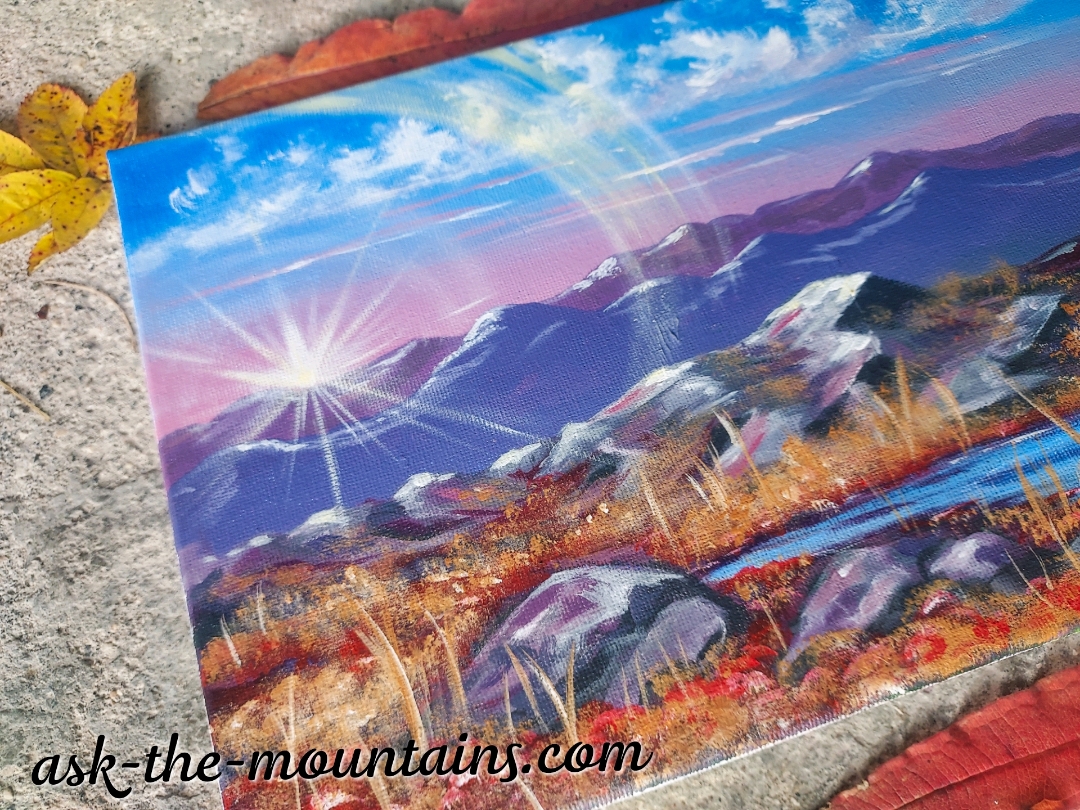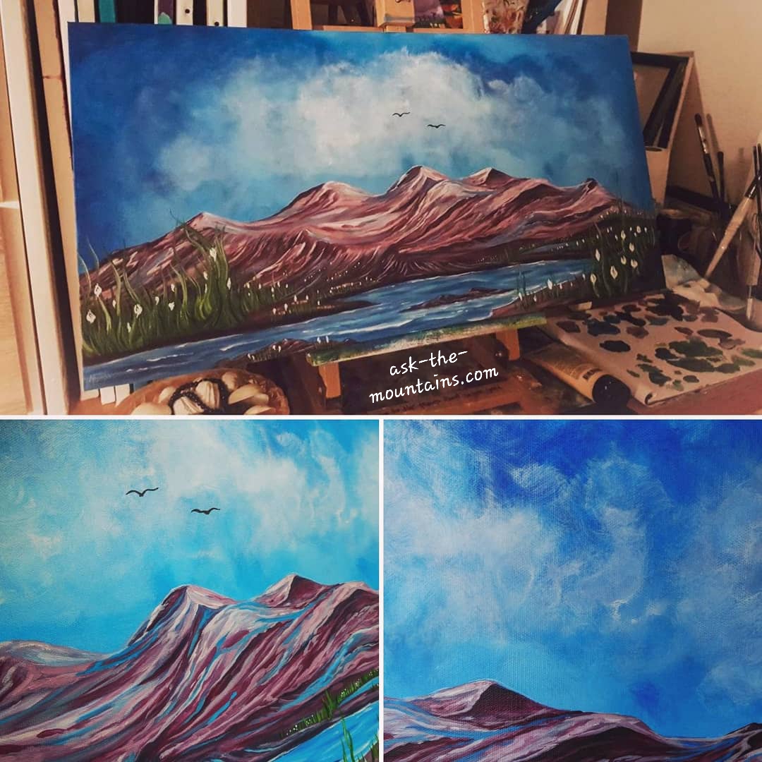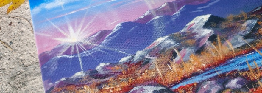 New painting inspired by the Arctic autumn.. Colourful landscape and a Sun that has started to set again after midnightsun season is over. This is a gift for my father, who is kind of the one who gave me art and an interest in art. 🍂🍁🌅🙌🏼