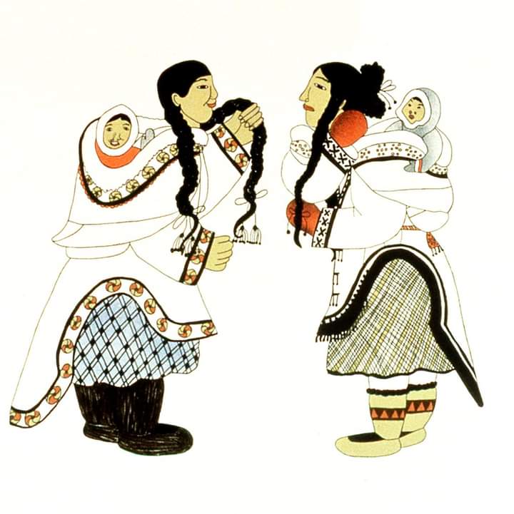 Art by Germaine Arnaktauyok, “Quiet Time”, 2005Art by Mayoreak Ashoona, “Matching braids”, 1991