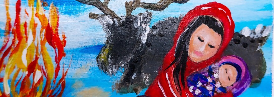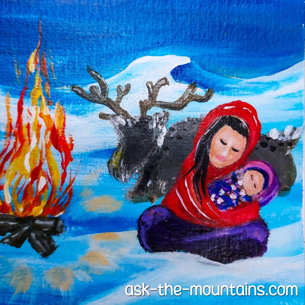 A painting I did some years ago. “I will keep you safe and warm”.