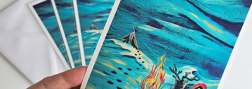 The prints are made from a painting I did back in 2021 when I first became a mother. Afterwards, I slightly edited it digitally, and thought it looked wonderful as printed art cards 😊 I have 3 cards available currently.