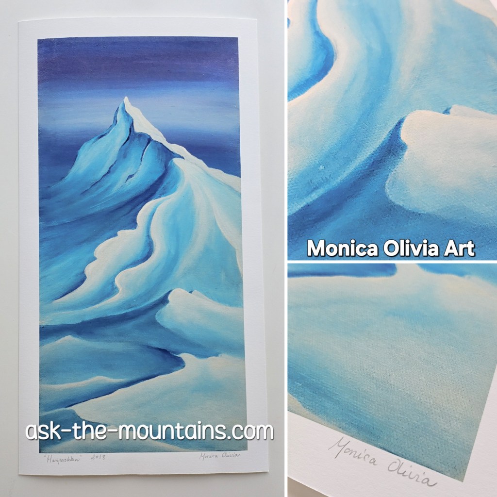 I painted this motive back in 2019, with the inspiration of a photo I took during the Polar night. And recently made this art print from it that I wish to sell ❄️ The price is 1800 NOK 🩵The print is 48 x 56,3 cm, printed on art paper by Fineartprint in Sandnes, Norway.I like to write the title on front, and the signature on the back of the print as the painting is already signed from when it was painted. In other words, not a huge fan of double signing 😄I also made small art prints/cards with envolope. 75 NOK for one, 140 NOK for two 💙Previoisly made business cards with the same motive. Here sending off 4 art cards along with 2 business cards to the South of Norway 🙏🏼😃